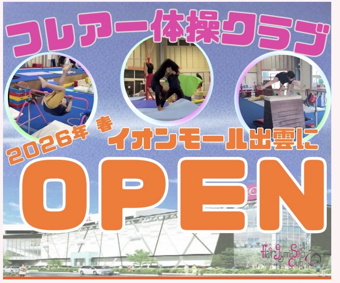 2026年4月、イオンモール出雲にフレアー体操クラブイオンモール出雲教室がオープンします!
