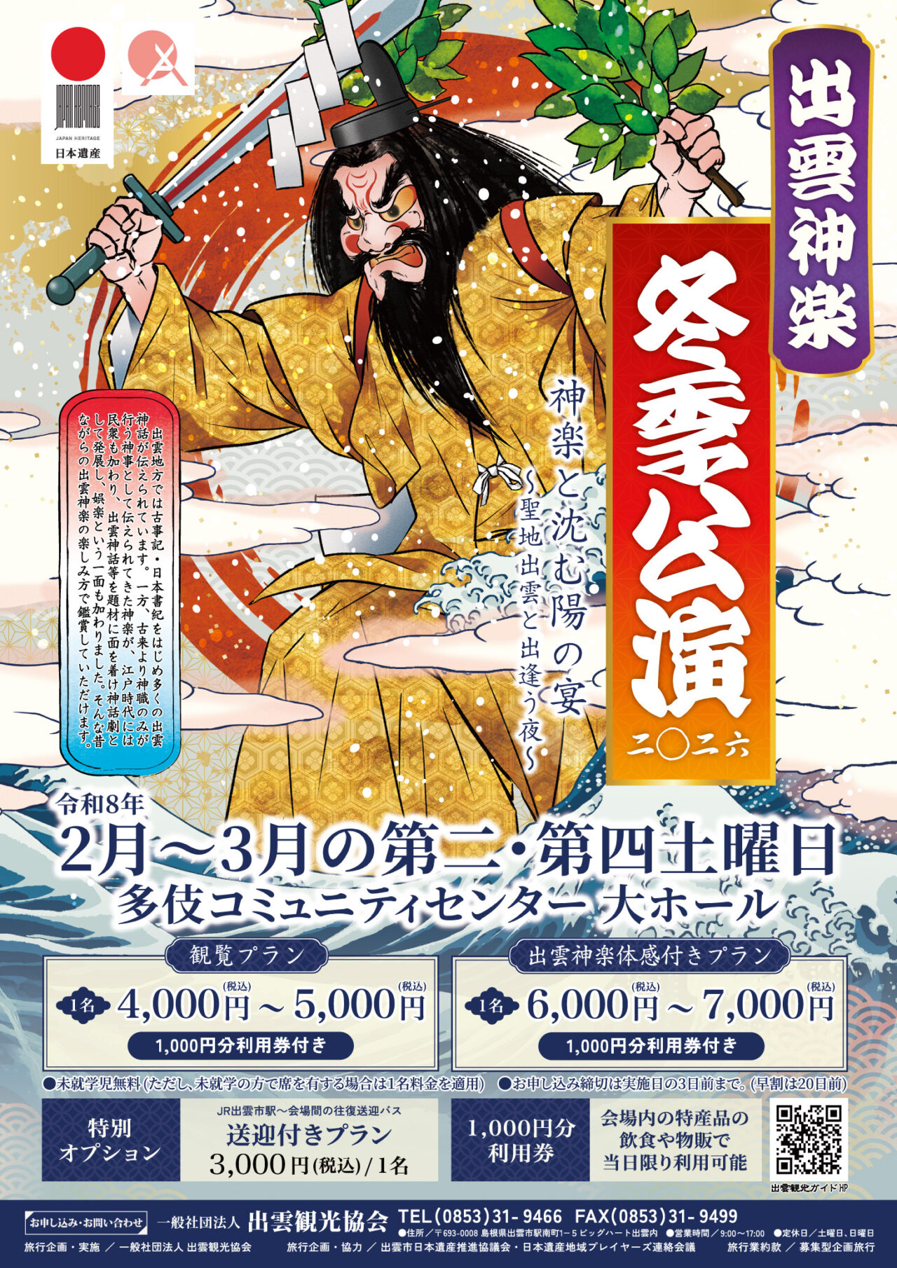 さらに、「出雲神楽とふれあいマルシェ」の開催日には、「出雲神楽冬季公演2026 神楽と沈む陽の宴~聖地出雲と出逢う夜~」も開催されます!