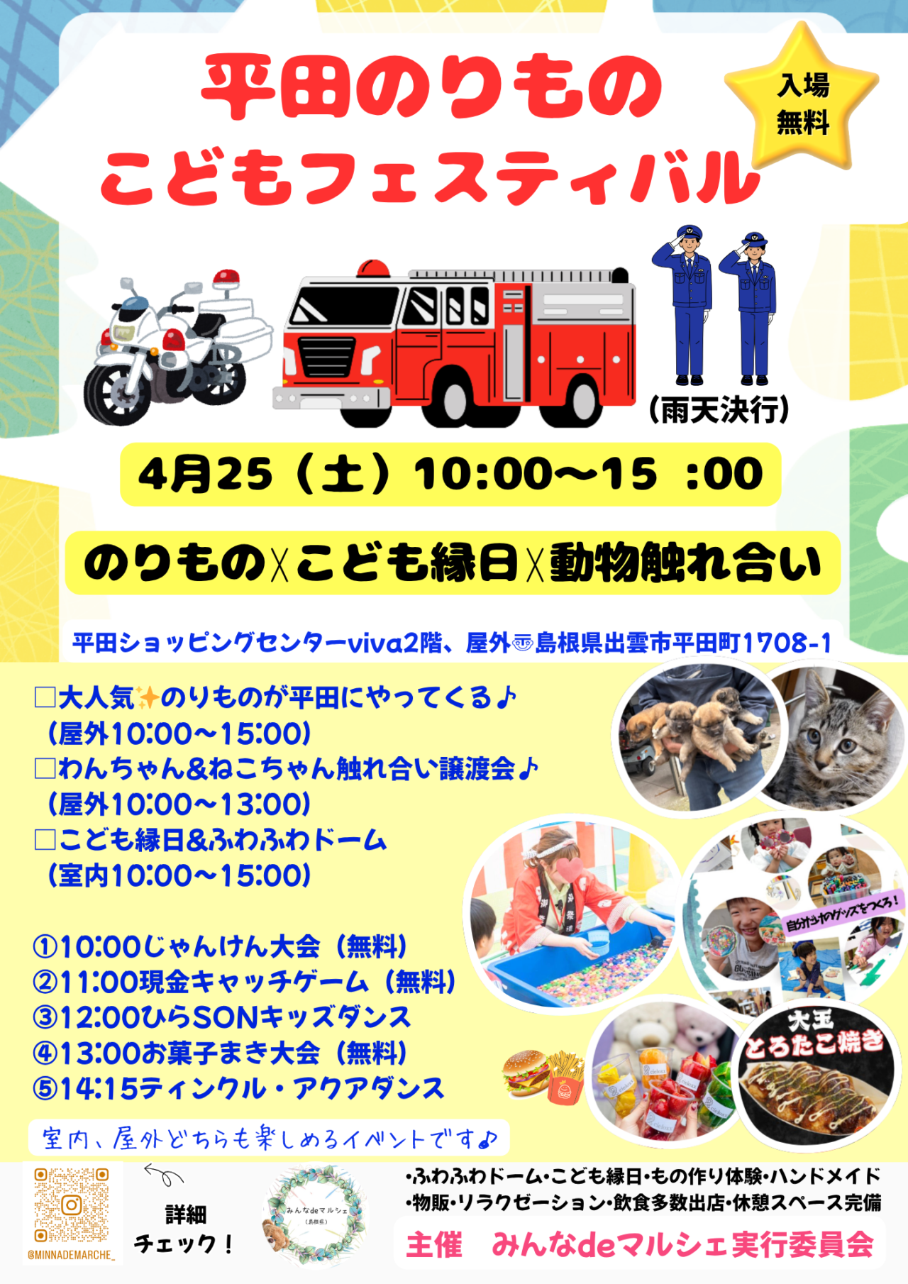 - 10:00~15:00 大人気のりものが平田にやってくる♪(屋外)
